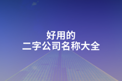 每天都会有很多公司成立,如果想要自己的公司从这些公司中脱颖而出就想要为自己的公司起一个好用的二字公司名称,那么下面就让大有企服小编来为大家分享一些好用的二字公司名称吧。