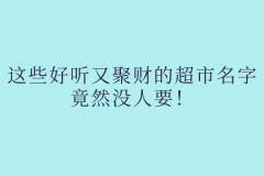 现如今大街上大大小小的超市可是非常多的,所以要想起一个好听又聚财的超市名字可不是一件简单的事情,那么今天大有企服小编就为大家整理了一些好听又聚财的超市名字,来供各位老板参考。